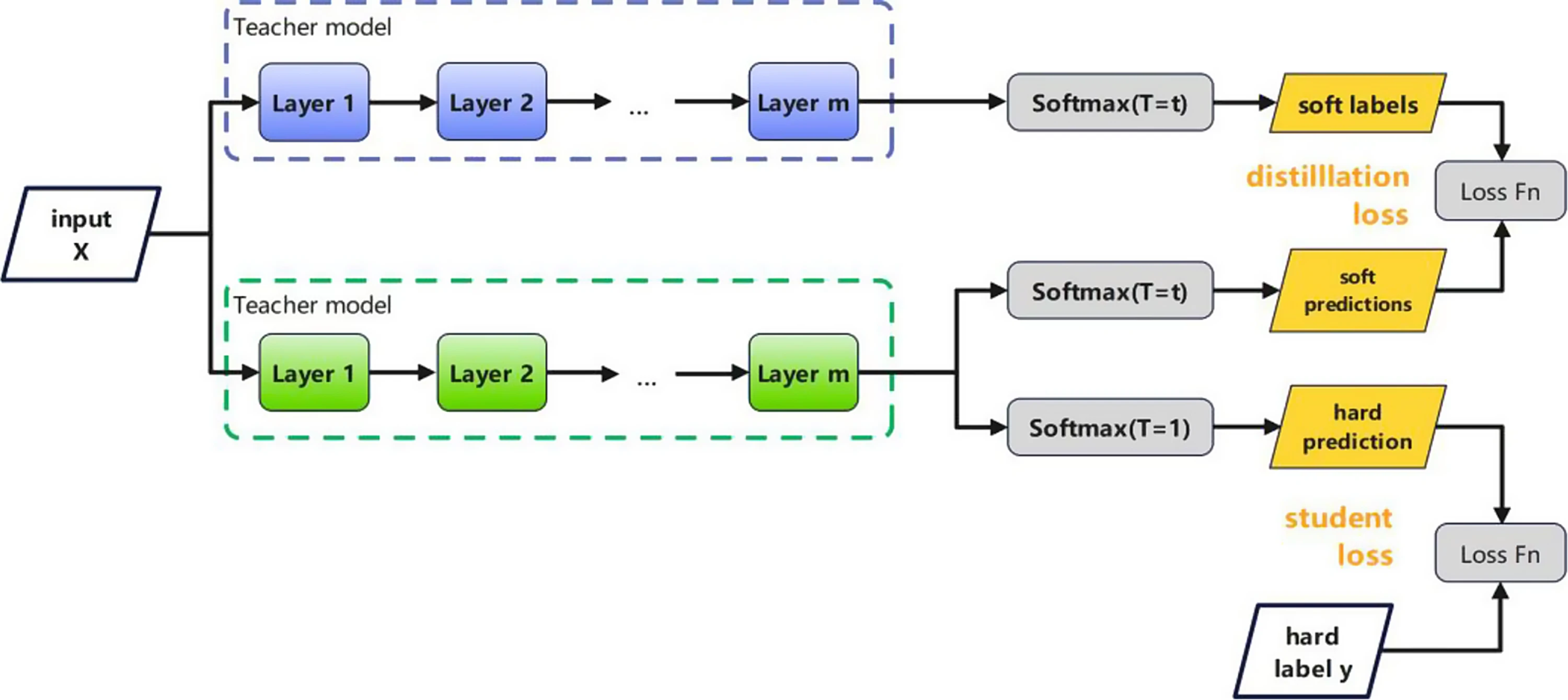 概念 “模型蒸馏”(Model Distillation)是一种高效的模型压缩与知识转移方法,其通常会使用一个已经经过训练的教师模型,该模型在大型数据集上表现出色。然后,将教师模型的知识传递给一个更小的学生模型,使得学生模型能够以较小的规模进行推理,并保持与教师模型相似的性能。 教师模型 教师模型是指一个已经训练好的、容量大、性能强的模型。它的作用是在蒸馏过程中提供预测概率(soft label),指导学生模型的学习。 为什么蒸馏比直接训练小模型效果好? 标签(Hard Label) 教师模型预测(Soft Lab…